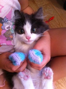 You can check out the entries so far here and I do like ‘Merlin’ (if you listen carefully, you can hear rather ‘beautiful’ singing in the background). Do let me know if you enter! I’m a little bit tempted to enter this photo of Bumble in mittens. Littlest asked her nanny to knit mittens to stop his paws from being so cold. Is being cute a talent?